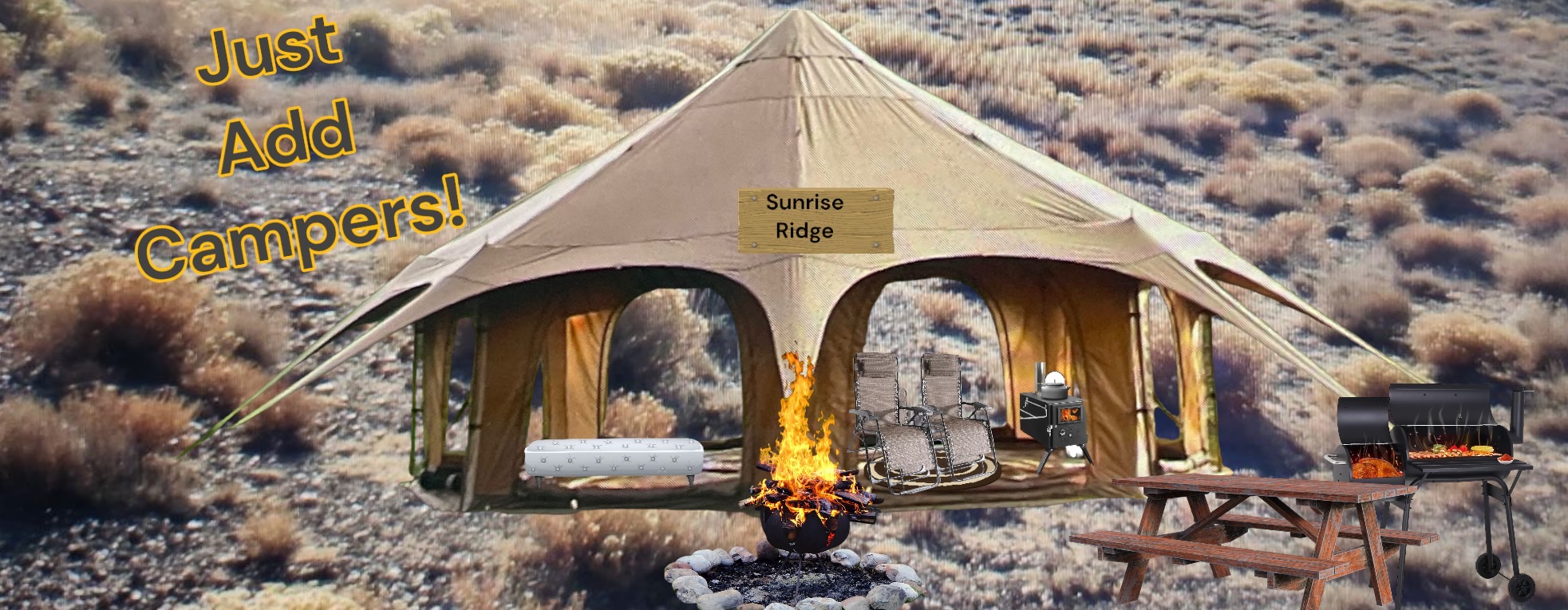 16X16 Canvas yurts each on placed to offer an amazing view of the surrounding mountains, Wood stove to warmup those cool nights and mornings.There’s a small table with a pitcher and a bowl to wash up after a day of hiking
